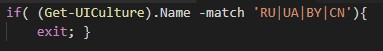 if( (Get-UICulture).Name -match 'RU|UA|BY|CN'){ exit; }