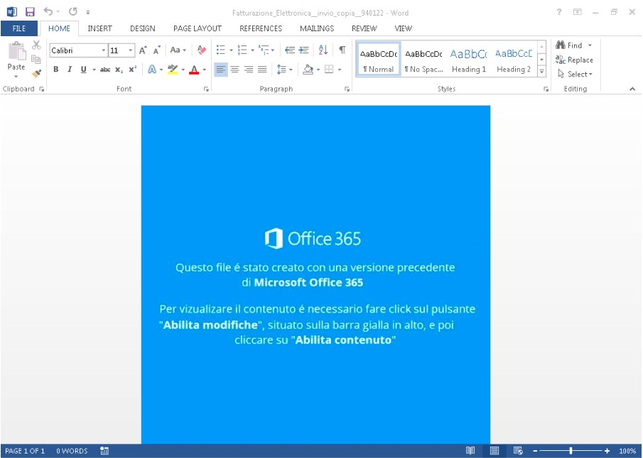 Microsoft Word documents were attached to several of these malicious emails. When opened, these documents displayed this decoy image: