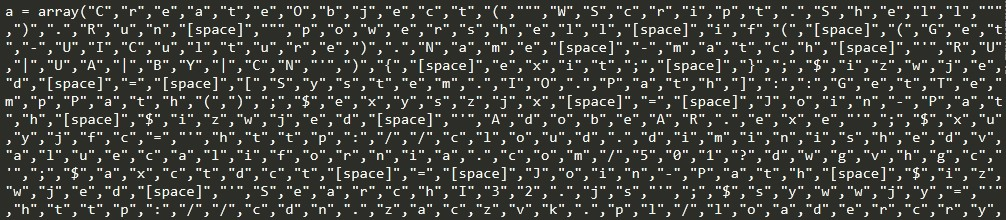 At the end of the script, the following code is responsible for performing a mathematical operation on all of the numbers in the array, reconstructing it into code that can be executed, and then executing it to continue the infection process: